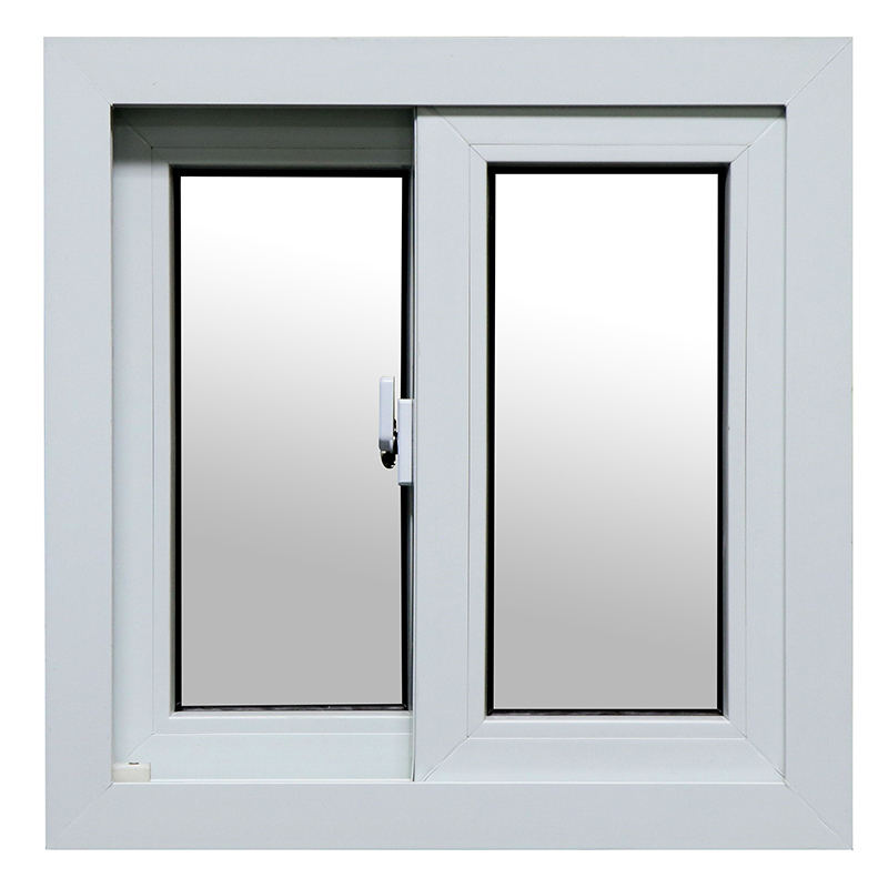 Ventana en color blanco con protección UV, 1 hoja fija 1 hoja corrediza, vidrio claro de 4mm, cerrojo + mosquitero